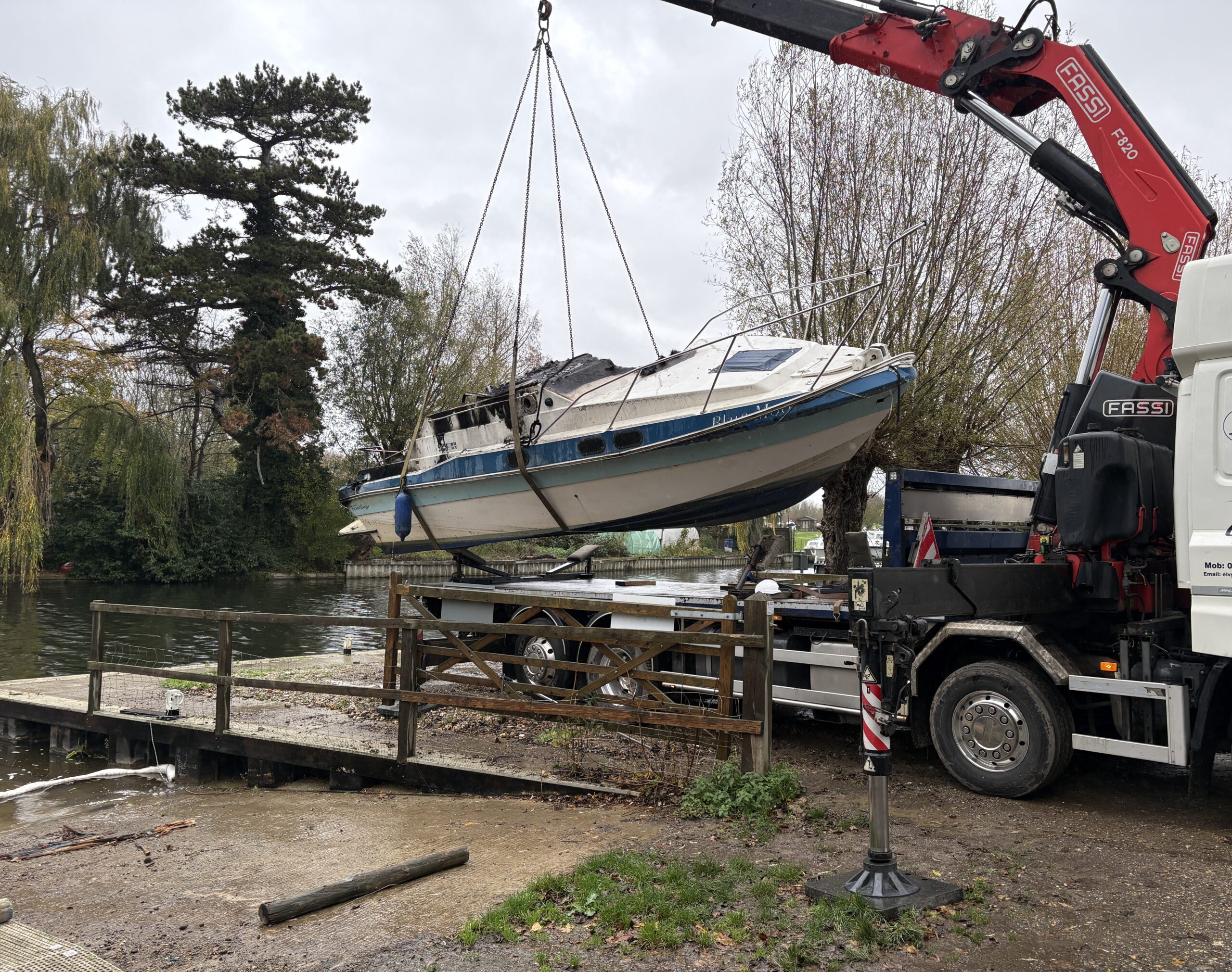 If you have a boat in a garden or awkward place we can usually just have it collected by hi-ab but we are also happy enough to spring into action a come to you to chop her up.